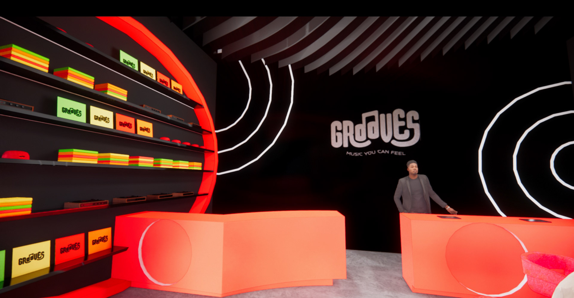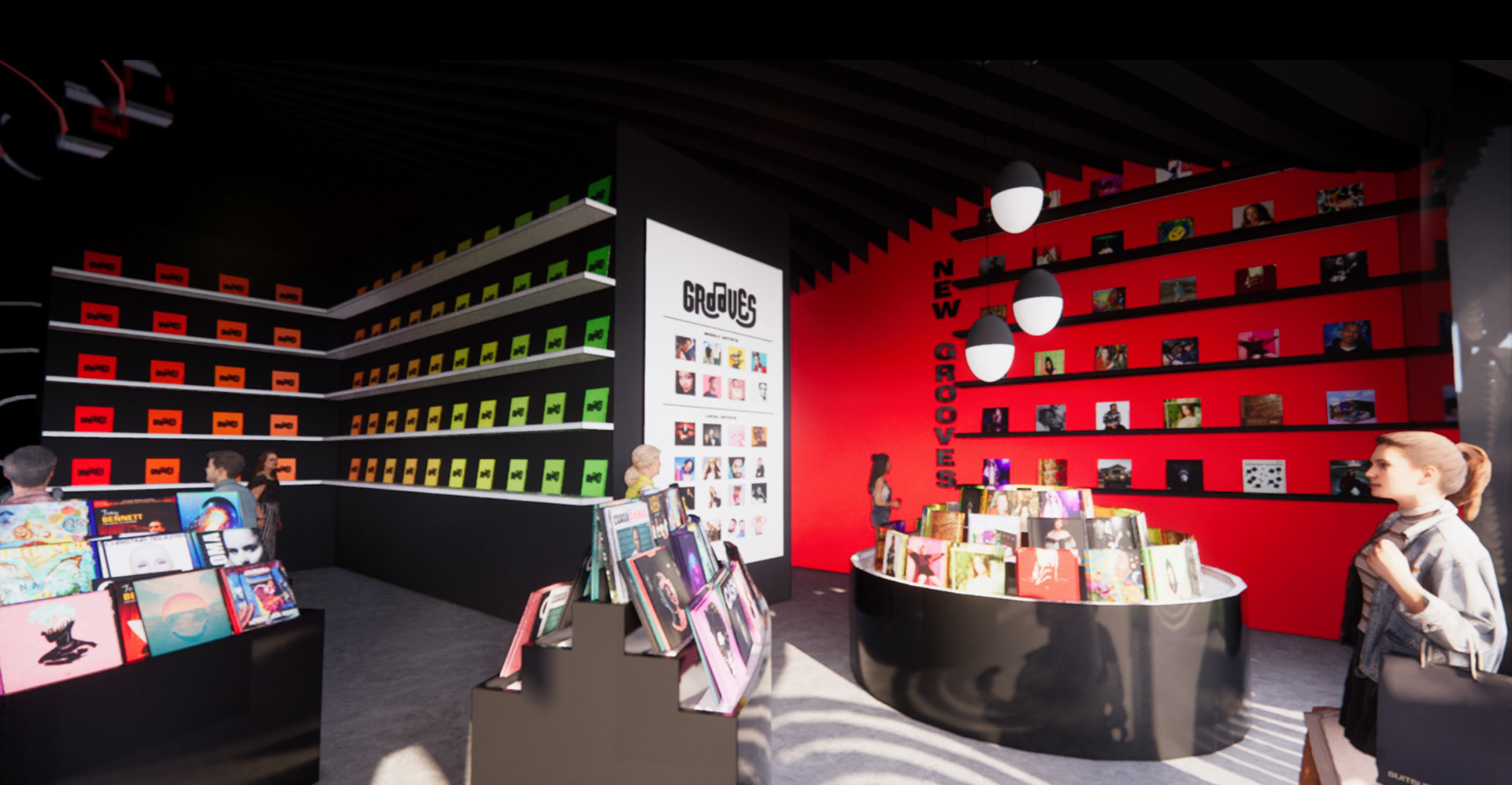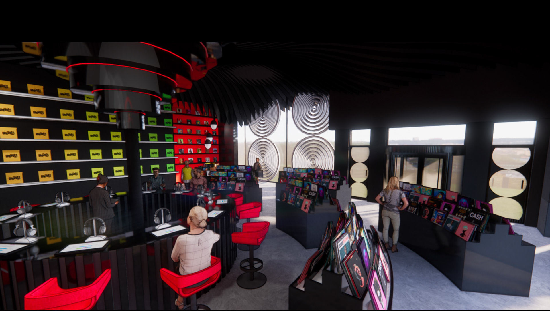 Grooves Records invites you to come in and feel the music. It's a local record store located on Sunset Boulevard where you can hangout, test records and chat with music experts. Its name plays off the groovy sound of music as well as the grooves on a record. This was a project in collaboration with CallisonRTKL where we were teamed up with interior design students to create a record store.